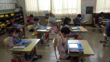 1年生が学習用タブレットを使って、豊田市にある公園について調べていました。少しずつ学習用タブレットの扱い方に慣れて、いろいろな学習に活用できるようになるといいですね。