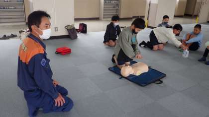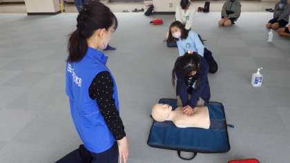 応急手当の方法として心臓マッサージやAEDの使い方について学習しました。5年生は真剣な様子で話を聞き、実習を行いました。講師の方から、「上手にできていますね。」とほめていただきました。