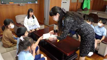 8名の子どもたちが、校長先生から誕生日カードを受け取りました。おめでとうございます。良い1年となりますように…。