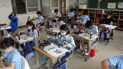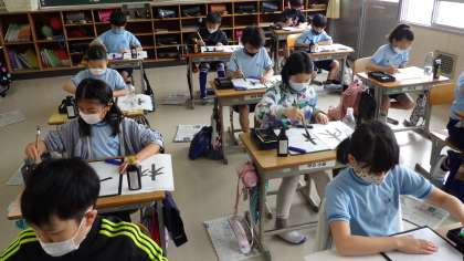 書写を行いました。姿勢を正しくしながら取り組みました。