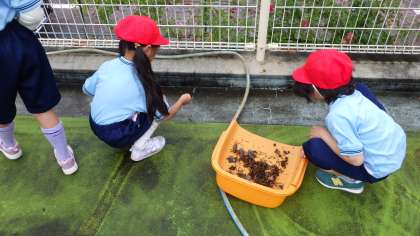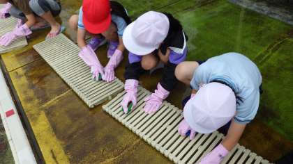 1年間分の汚れがたくさんありましたが、各学年で仕事を分担して、一生懸命取り組んでいました。プール開始が楽しみです。