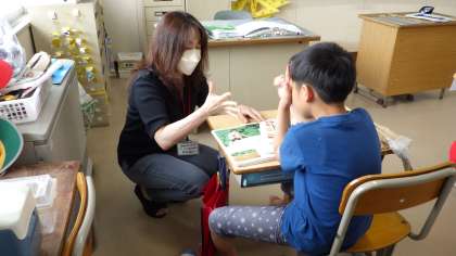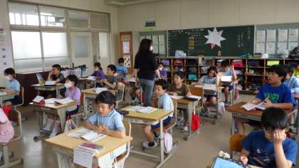 ALTの先生、英語ボランティアさんと外国語活動を行っています。