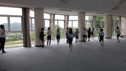 3階あゆみホールから、元気な歌声が聞こえてきました。5年生です。キャンプファイヤーの練習をしています。司会担当の子たちは練習するうちに、堂々と役をこなせるようになっています。出し物も何度も改善しながら、みんなで作り上げています。