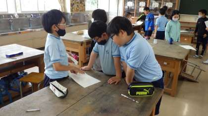 制作前に、自分で計画を立て、友達に助言を受け、表現したいものについて見通しを立てました。活発な交流を行ったおかげで、作りたいもののイメージがはっきりとし、集中して取り組んでいました。