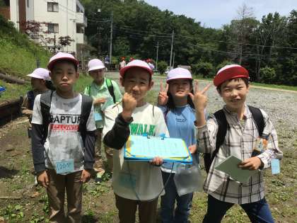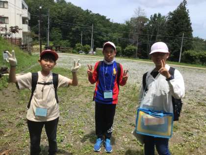部屋に荷物を置いて、最初のプログラム、探検ビンゴ開始です。自然を満喫してほしいです。