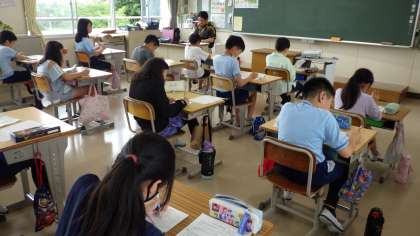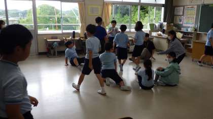 各学年の授業の様子です。5年生は野外学習の振り返りを行っています。4年生は子どもたちで企画したお楽しみ会を行っていました。2年生は器具を使った運動を行っていました。