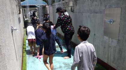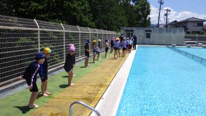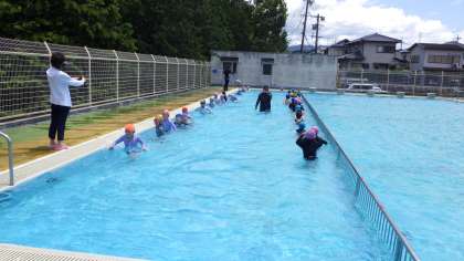 雨で延期になっていた1・2年生水泳の授業が今日行われました。