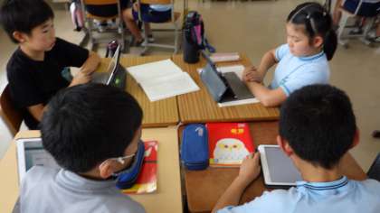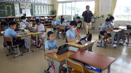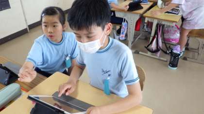 今日はICT支援員さんが訪問し、学習用タブレットを使った授業を支援しました。