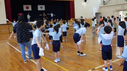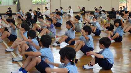 今日の児童集会は、5年生が野外活動キャンプファイヤーの際に踊ったダンスを、前項に紹介し、踊りました。元気な様子で踊り、明るく雰囲気を高めていました。とても頼もしい5年生でした。