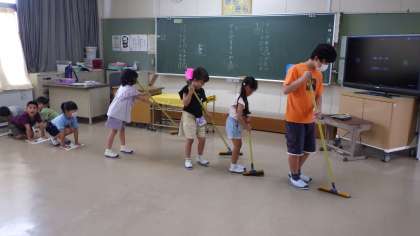 夏休みが近づいています。計画的に学校をきれいにしようと、清掃強調日が始まりました。どの学年も丁寧に掃除をしていました。「こんなに汚れがとれたよ。」と床を拭いたシートを見せてくれました。