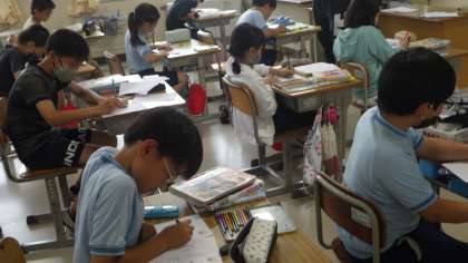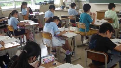 4年生は国語でおすすめの本の紹介を、5年生は国語でお話の山場について考え、6年生は音楽でリコーダーやオルガン等を使って合奏を行っていました。高学年になると学習の内容もレベルアップし、集中力も高まります。