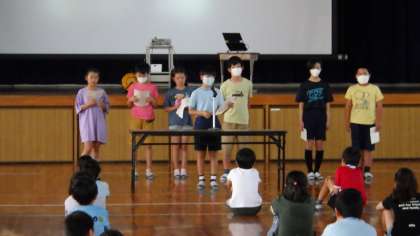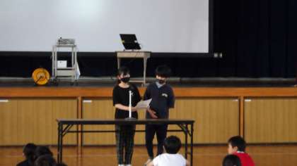 生活放送委員会からは、熱中症に対する注意の呼びかけ、企画エコ委員会から、七夕の由来、そして短冊の書き方について説明がありました。