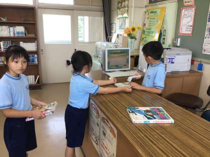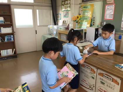 本を借りるとき、委員会のお兄さんお姉さんが操作しているのを見て、憧れの気持ちをもつようです。とてもうれしそうに、操作していました。