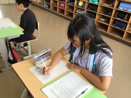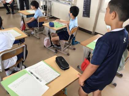 米作り講師の細井様をお招きし、学習会を行いました。子どもたちは事前に考えた質問をし、講師さんのお話を熱心にメモしていました。