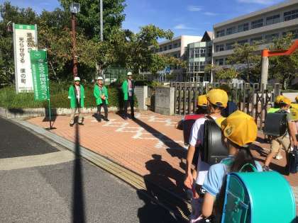 また、保護者の方も立哨で子どもたちの登校に付き添っていただきました。