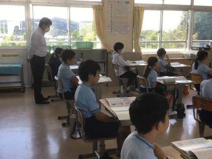 山本教育長が来校され、子どもたちの授業の様子を見てくださいました。どの子も集中して、授業に臨んでいる様子に関心されていました。