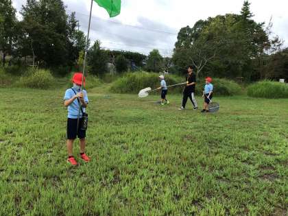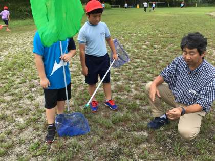 まず、昆虫採集の仕方について教えてもらいました。その後運動場で採集しました。昆虫は採集できたかな?