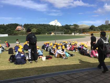 ジブリパークに到着し、大倉庫への入場を待っています。
