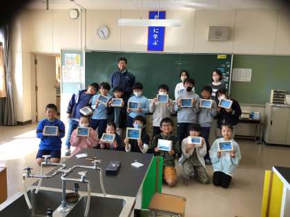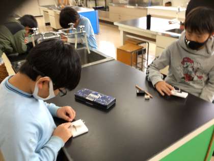 さらに講師の方が採集した、珍しいトンボの標本を子供たち一人につき2匹もプレゼントしていただきました。子どもたちは食い入るようにトンボを見つめ、色や大きさ、形などの特徴を観察していました。