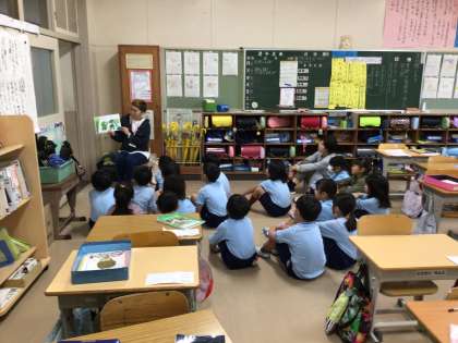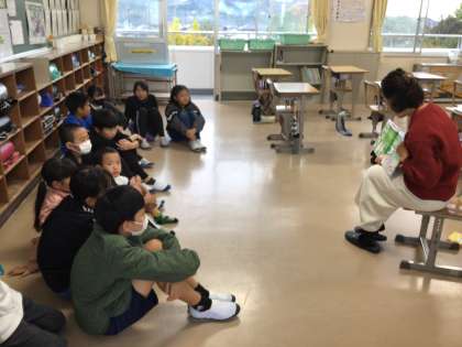 今日は読み語りの日です。ボランティアさんのお話に聞き入っています。
