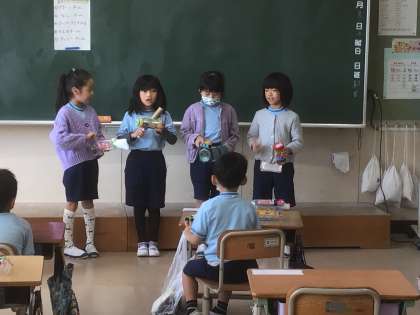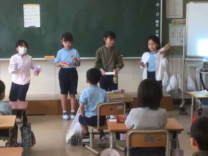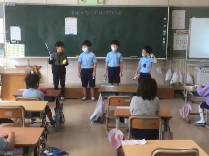 2年生が、図工で制作した、手作り楽器の発表会が行われました。