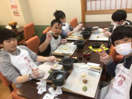 出来た生八つ橋はお土産に持ってかえるので、お家で楽しんでください。