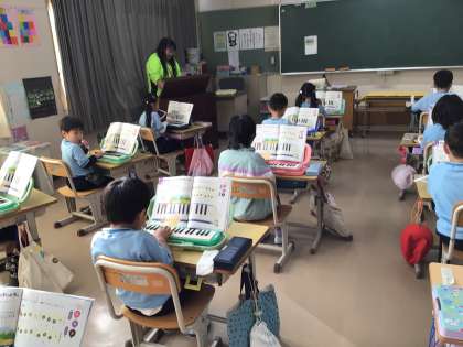 1年生は音楽で鍵盤ハーモニカの演奏をしていました。