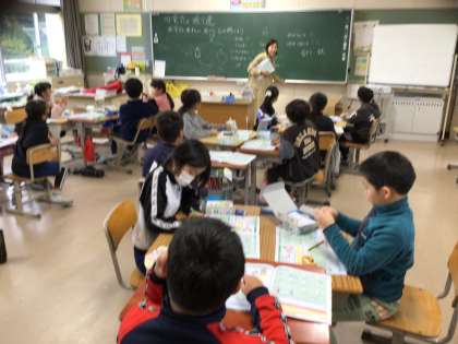今日の授業の様子です。ICT支援員の方が見え、タブレットを使った学習も行いました。