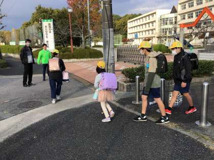 PTAの方、育成会の方とともに挨拶運動が行われました。