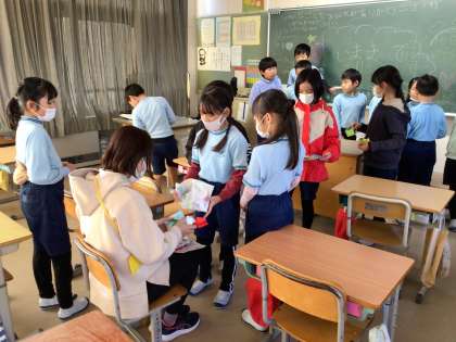 すべて子どもたちで行っていました。一人ずつ先生にお礼の言葉を述べたあと、プレゼントを渡しました。最後はみんなで円になり、担任の先生にお礼をしたり、これから頑張ることを誓い合い合ったりしました。