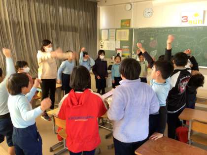 担任の先生が、明日から休暇に入るため、3年生の子がお別れ会を行いました。