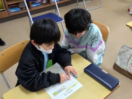1年生が算数で「なんばんめ」の学習をしました。前(後ろ)から何番目や、前(後ろ)に何人という概念は難しく、理解するのに苦労することがあります。ですが、1年生の子たちは、どの子も図を書き、問題の解き方について説明できていました。1年生の頑張る姿が素敵です。