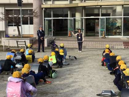 一斉下校時に全学年を対象にして自転車の乗り方講習会が開かれました。警察署の方がお見えになり、丁寧に説明をしてくださいました。安全で楽しく自転車に乗れるといいですね。