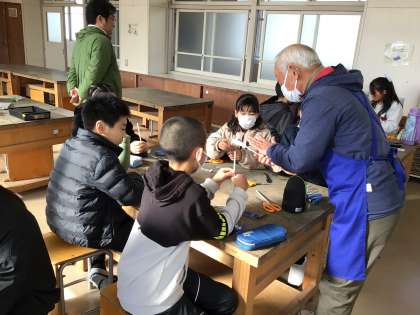 水曜日に竹とんぼを制作するための前段階として、5年生が、紙やストローを使った竹とんぼづくりを行い、飛ぶ原理を学びました。実際に飛ばしてみると予想以上に高く飛んだので、歓声があがりました。水曜日が楽しみです。
