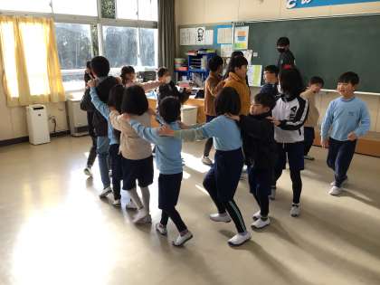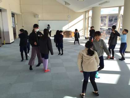 縦割り遊びの様子です。じゃんけん汽車やクイズ、だるまさんが転んだ、ドッジボールなど楽しく遊びました。