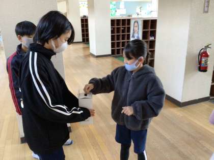 24日から、外国の困っている子どもたちや、能登半島地震救済に協力するために、企画エコ委員会が中心となって呼びかけ、お年玉募金を行っています。