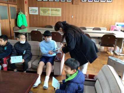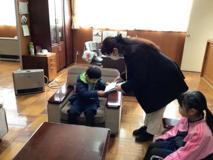 1月のお誕生日の子たちが、校長先生からお祝いのカードをもらいました。