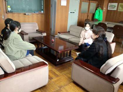 卒業間近の6年生が、校長先生に招かれ、長放課にお話をしています。6年間のうちで最も楽しかったことや卒業に対しての思いを、校長先生とお話していました。