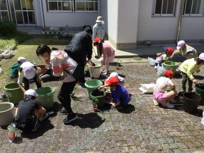 どの子も自分の苗が傷つかないよう、気を付けて植えることができました。