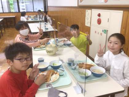 晴天に恵まれ、2日目スタートです。子どもたちはみんな元気で、早速朝食を美味しくいただいています。