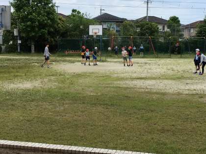 6年生が、担任の先生と遊んでいます。 楽しそうです。