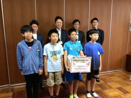 ベルマークを小学校のために役立てたいということで、五ケ丘東小学校に贈呈してくださいました。