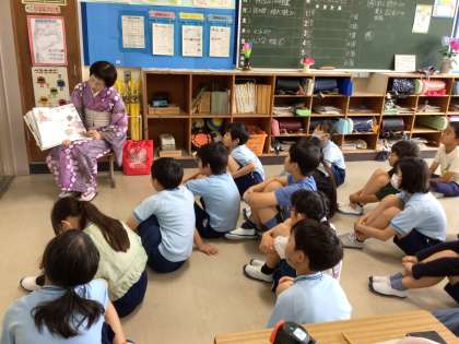 ボランティアさんの語りに、子どもたちは引き込まれ、絵本の世界を楽しんでいました。