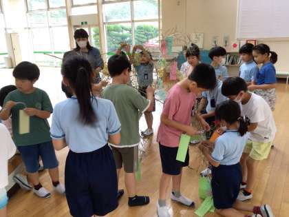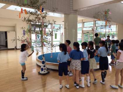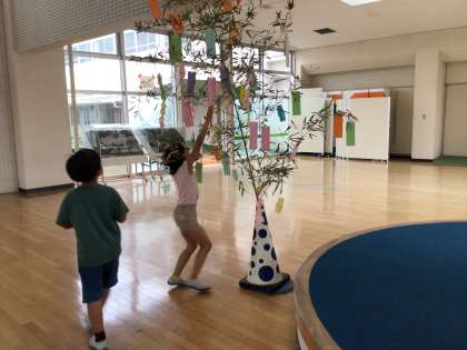 七夕が近づいてきたので、全校で願い事を短冊に書き、つるしました。