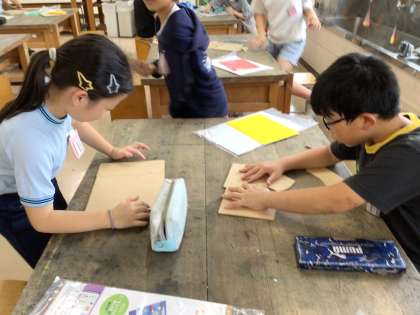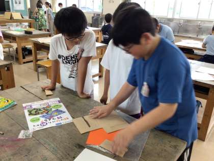 電動ノコギリを使って、木を自由自在に切っています。上手です。