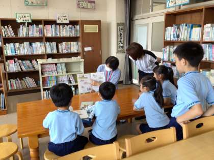 子どもたちは読み手の方と会話を楽しみながら、絵本に見入っていました。