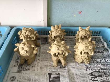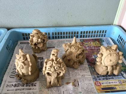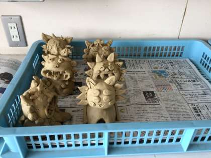 5年生の子たちに、「シーサーはその後どうでしたか?」と尋ねると、みんながとびきりの笑顔を見せてくれました。作品をさっそく見に行くと、力作ぞろいでした。見事です。