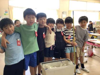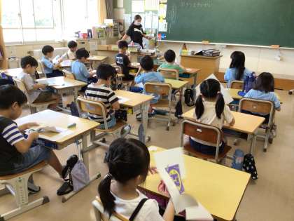 1年生が図画工作の学習を行いました。ハサミを使った後は、教室の掃除もしました。