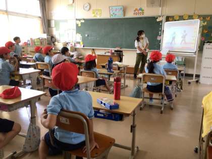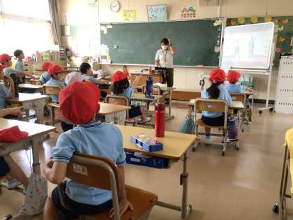 1年生は、動画を見ながら、表現の練習をしています。