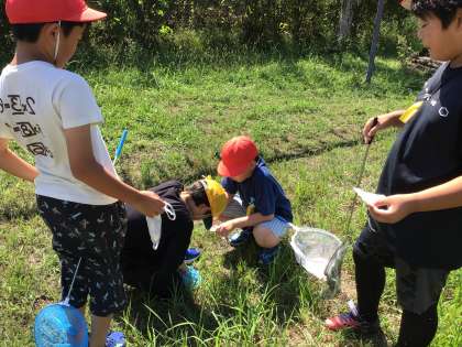 まず、昆虫を採集します。さすが4年生。ほとんどの子がつかまえていました。